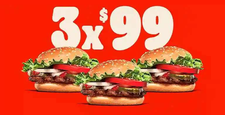 -Festeja este mes de reyes con Burger King con 3 Whopper Jr sin queso por $99, sobre el tradicional pan junior.
