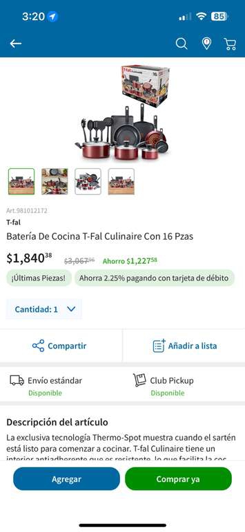 Sam's Club: Bateria de cocina t-fal culinaire con 16 piezas
