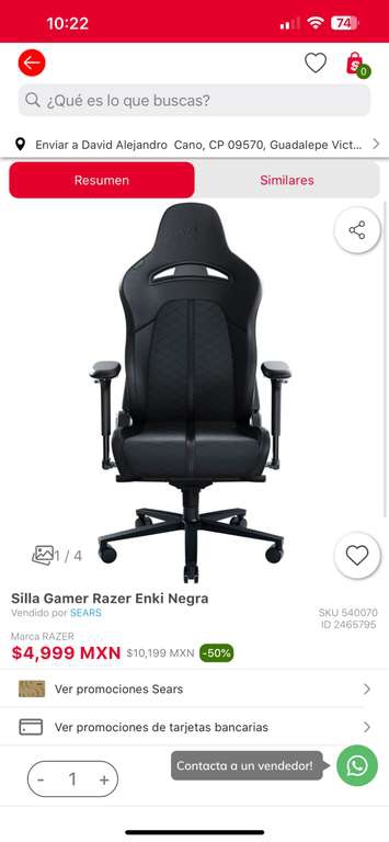 Sears Razer Enki Black Gamer Chair 4999 Tanto en Sears como en Claro compra The X en 4249