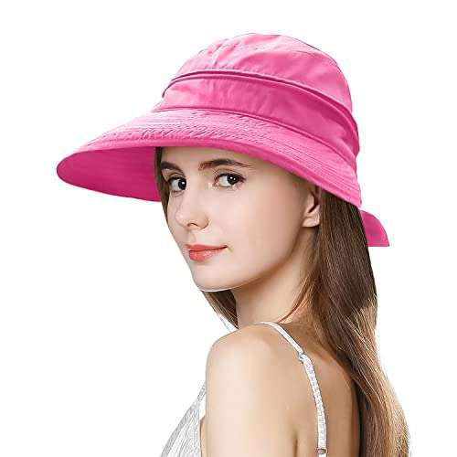 Amazon Ir a la oferta- 👒 [Sombrero de sol 2 en 1] - Viene con una cremallera para quitar la parte superior del sombrero y liberar tu cabello. Así que usted puede usarlo como un sombrero de sol envolvente completo en la cabeza o simplemente como un sombrero de sol superior vacío.