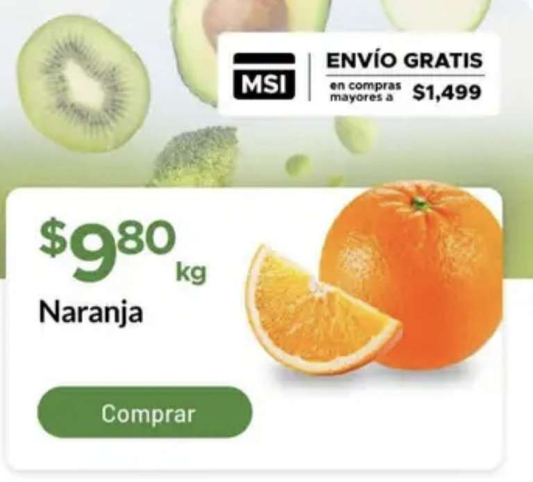 - Naranja $9.80 kg.