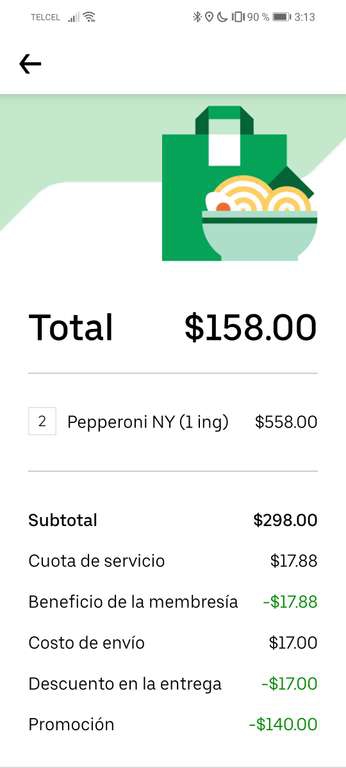 Uber Eats2 pizzas de pepperoni o queso de Papa John's en 158 con cupon de descuento de 140, oferta exclusiva de Uber One. Envio gratis
