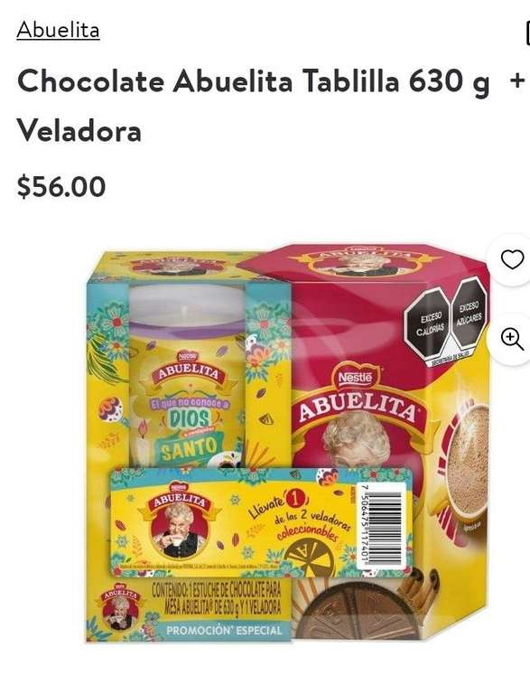 Vela Walmart super granny chocolate 630gr para el día de muertos.