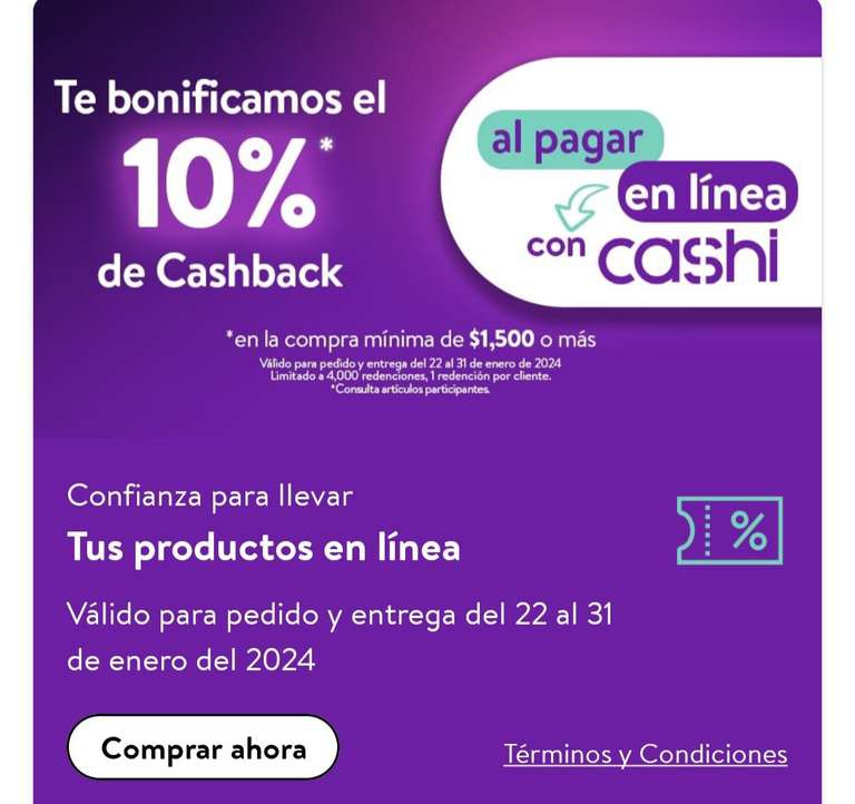 Promoción válida únicamente pagando la compra completa con la app Cashi en una sola exhibición