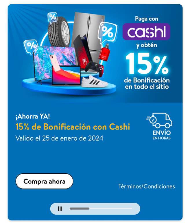 Walmart Ir a la ofertaValido el 25 de enero de 2024. Compra mínima para Bonificación -,999. Bonificación topada a -,500. Limitado a 1 promoción por cuenta.