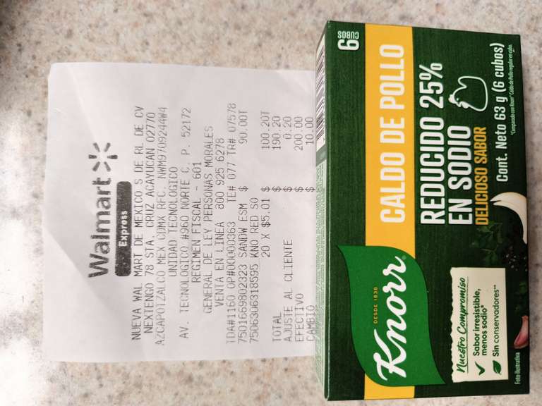 Walmart Express: Knorr caldo de pollo reducido 25% en sodio $5.01
