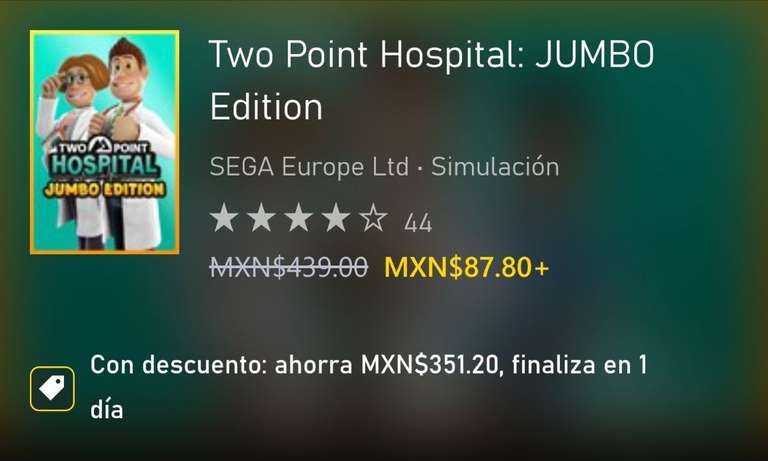 Xbox Ir a la oferta¡Descubre por qué Two Point Hospital es un fenómeno de la atención sanitaria con más de 3 millones de jugadores contentos! ¡Lleva tu experiencia de construcción de hospitales al siguiente nivel con cuatro grandes expansiones y dos contenidos descargables adicionales, todo ello recopilado en una extraordinaria JUMBO Edition que viene bien cargadita de cosas!