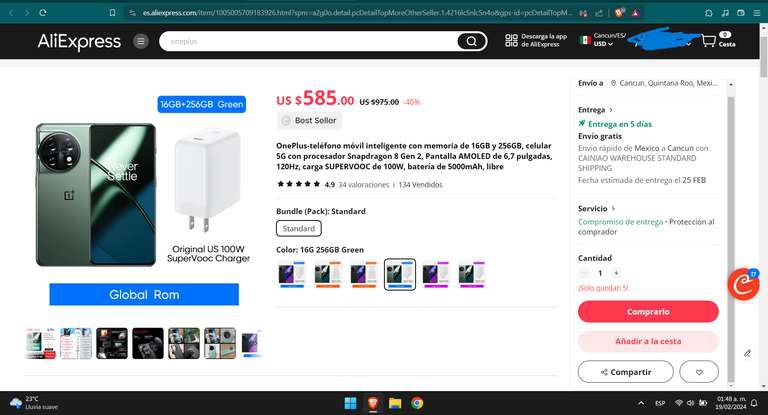AliExpress Oneplus 11 Versión Global con envío desde México