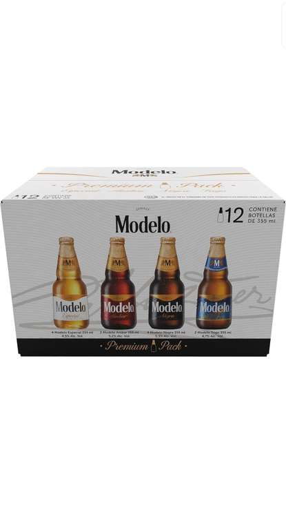 Amazon - Cerveza Modelo Premium Pack 12 Botellas de 355ml, con Modelo Especial, Ámbar, Negra y Trigo