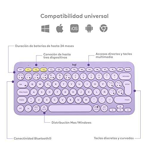 Amazon Ir a la ofertaTeclado Logitech K380 multi-dispositivo inalámbrico, compatible con PC, portátil, Windows, Mac, Android, iPad OS, Apple TV.