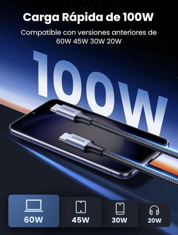 Amazon: UGREEN Cable USB Tipo C a C 100W 20V 5A, 1m