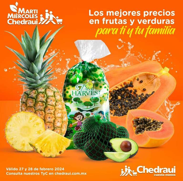 Chedraui Martimiercoles Manzana aguacate papaya y piña