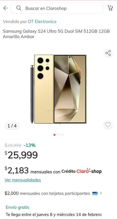 Claro Shop Ir a la ofertaSamsung Galaxy S24 Ultra 5G, me parece buen precio con el descuento y el de primera compra.