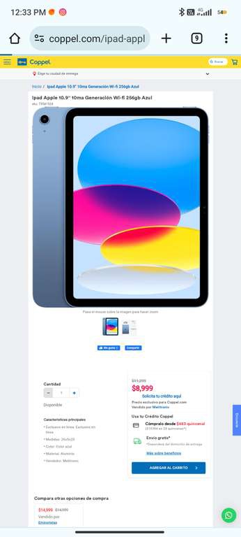 Coppel: iPad 10gen 256 azul