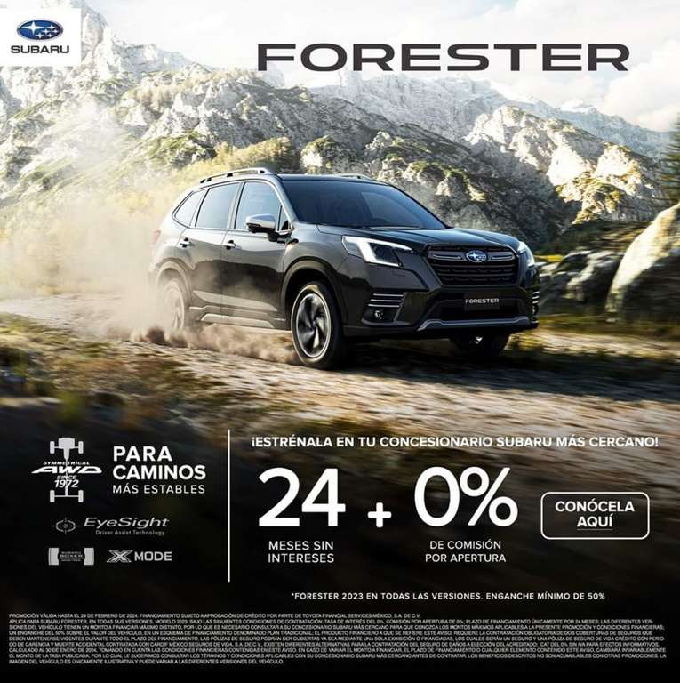 Modelos Subaru Outback Forester y Crosstrek a 24 meses sin intereses.