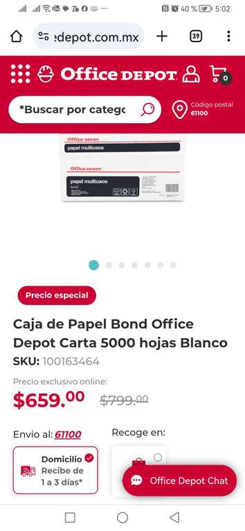 Office Depot Ir a la ofertaExcelente precio de la caja de hojas acá en mi rancho vale 1100 la vez pasada la compré también aquí subieron la oferta en $800 ahora un poco más barata envío gratis Ojalá y alguien le sirva
