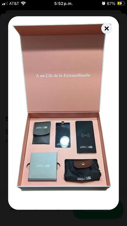 Trae unis audífonos, una pila portatil, un estuchito, un kit de manicura y un tag de maleta