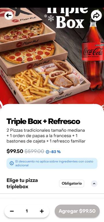 Rappi: Triple box con refresco de 2 lts a 99 - Tampico