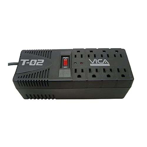 Regulador de Voltaje Electrónico Amazon VICA T-02 1200 VA / 700 W con supresor de sobretensiones de 8 salidas reguladas y puertos RJ11 y RJ45