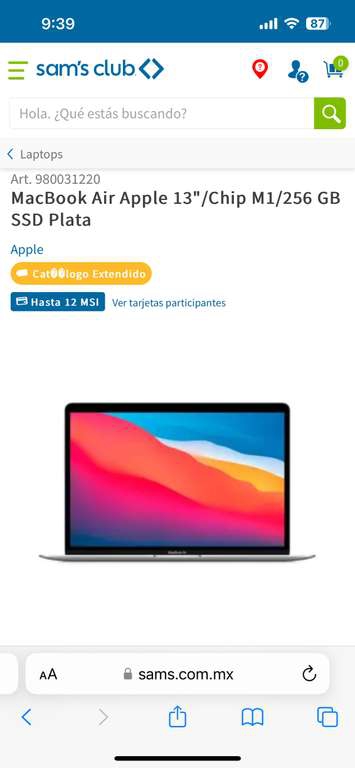 Sam's Club: MacBook Air Apple 13"/Chip M1/256 GB SSD Plata