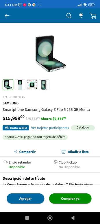 Sam's Club: Samsung Galaxy Z Flip 5 256 GB menta