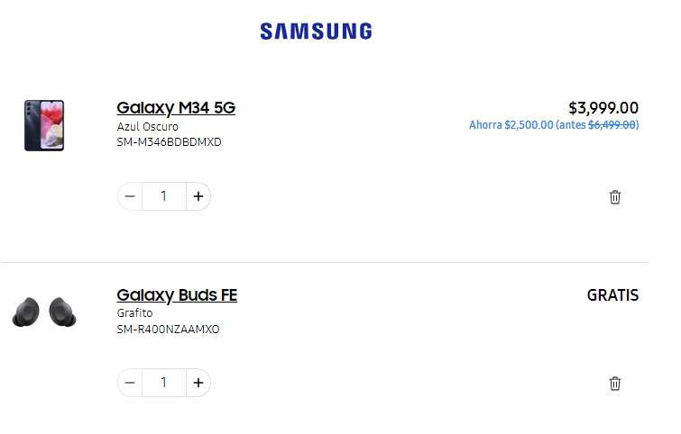 Samsung Store: Galaxy M34 5G - 6.5" Super AMOLED - (6+128GB) + GALAXY Buds FE