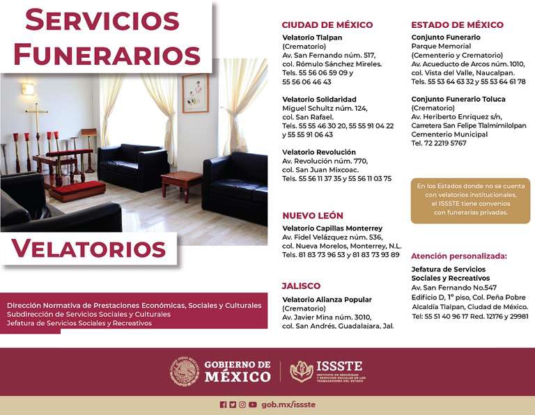 Gobierno CDMX Ir a la ofertaDescuentos funerarios para Tarjetahabientes ISSSTE y el Público en General.