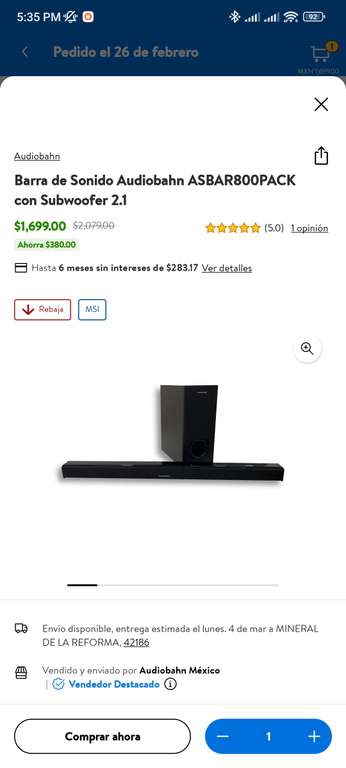 Walmart Ir a la ofertaMuy buena barra de sonido, suena muy bien con el bajo potente.