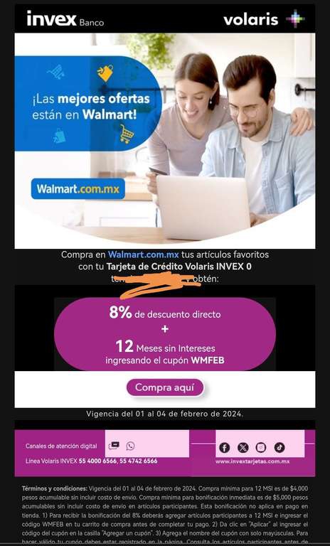 Walmart Ir a la oferta. Para beneficiar al mayor número de consumidores limitaremos las bonificaciones a 1 uso por cuenta, considerando como cuenta el mail, teléfono y/o dirección. Los MSI no aplican pagando con vales de despensa.