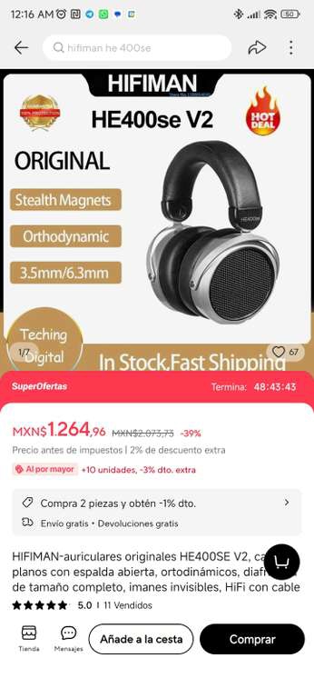 AliExpress Hifiman HE400SE V2 (en super ofertas)