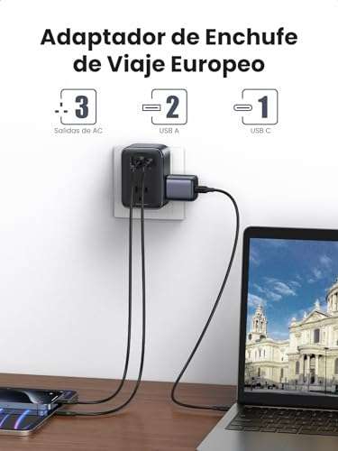 Amazon: UGREEN Adaptador Europeo Enchufe, 30W Cargador de Viaje Tipo C con 3 AC