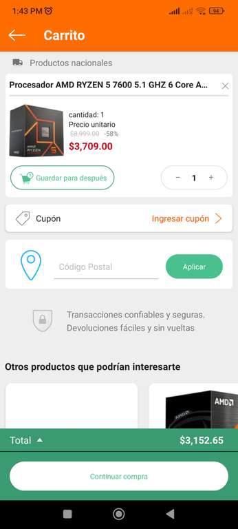 Linio Ir a la ofertaSe me hace buena oferta aunque no e visto ofertas de cómputo de Linio publicadas aquí. Ya solo me falta una Ssd para armar mi pc 😁