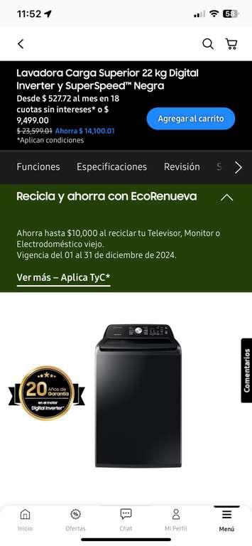 Samsung Store: LAVADORA 22k INVERTER SAMSUNG WA22B3554GV A MSI.