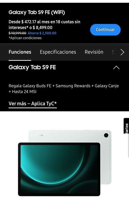 Samsung Store Ir a la oferta>samsung.com, también la Tab S9 FE tiene descuento usando los cupones: FF9010 y LIVEHUB10. Además de regalo los Buds FE.