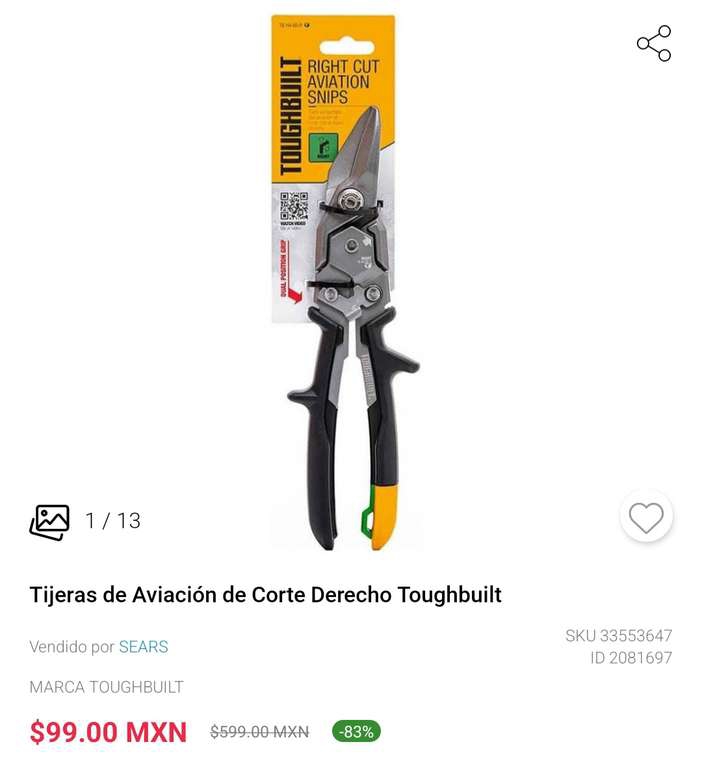 Tijeras de aviación de corte derecho Sears