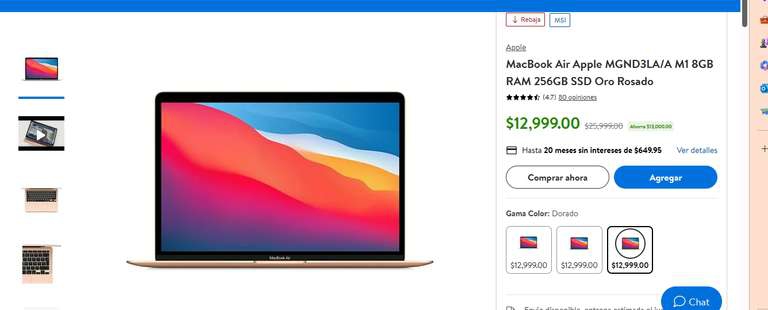 Walmart MacBook Air Apple MGND3LA/A M1 8GB RAM 256GB SSD Rose Gold